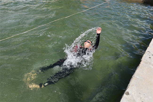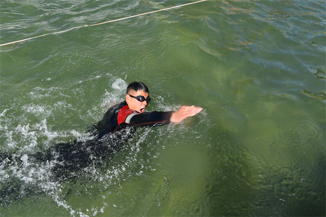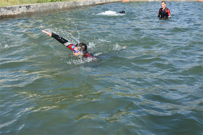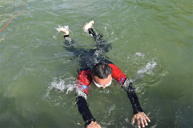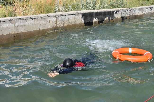本网讯:(宇宏鑫)游泳是水域救援的基础技能,也是增强队伍救援能力,强化体能素质、提高打赢本领的有效途径。为做好汛期水域救援准备工作,提高消防救援人员游泳技能水平,近日,富蕴县森林消防大队大桥林场驻防分队积极利用野外有利条件开展游泳技能训练,不断提升水域救援硬实力。