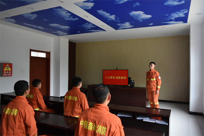 革命先烈与青山同在,英雄精神与日月同辉。富蕴县森林消防大队大桥林场驻防分队组织全体消防救援人员进行了“七七事变”主题演讲活动。演讲过程中,消防救援人员们紧紧围绕“铭记历史、勿忘国耻”这一主线,用鲜活的事例陈述观点,声情并茂地表达了自己对“七七事变”这段历史的认识,时刻提醒自己勿忘国耻,履行使命。通过开展主题演讲活动,给全体消防救援人员上了一堂生动的爱国教育课,充分展示了新时期消防救援队伍的精神风貌。