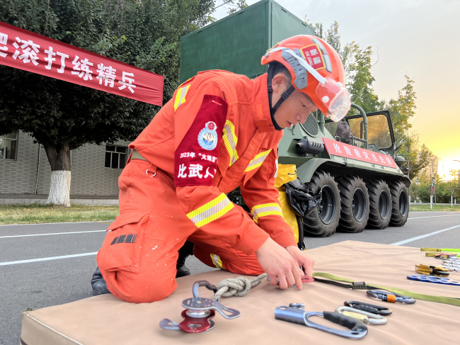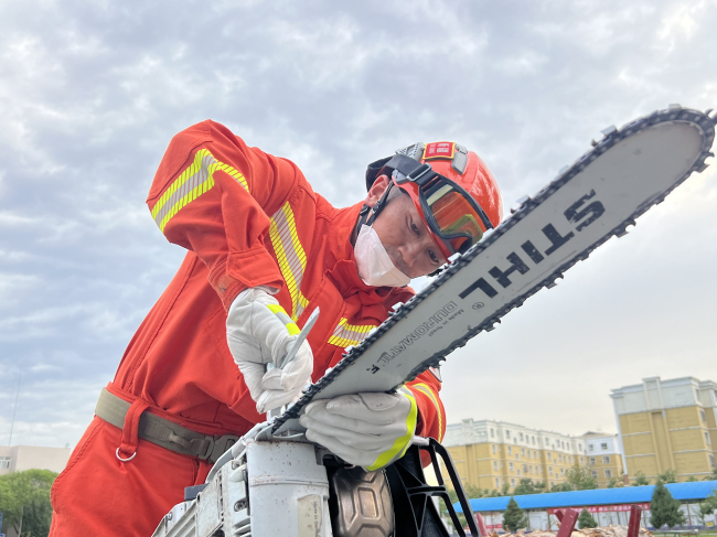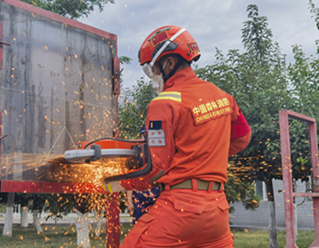 基础装备操作使用作为此次比武抢险救援模块中难度大、强度高的课目,对比武人员的体能、爆发力、耐力和智力提出了严峻挑战。随着评判员“开始”口令下达后,比武人员在规定距离内,依次完成油锯操作与使用、钢筋速断器操作与使用、无齿锯操作与使用、绳索救援装备操作与使用、理论答题5项内容,当比武人员通过终点线后按下计时器,最终以时间和每项装备操作是否符合操作要求综合评定成绩,全面检验单个人员救援装备运用水平及临机处置能力。期间,评判人员始终按照公平公正原则,细致进行评分,切实做到“一把尺子量到底”;全体比武人员以全力以赴、永不放弃的满腔热血和勇往直前、勇争第一的必胜信念,在烈日与汗水的交织呈现中新时代消防救援人员虎气血性和精神风貌。
