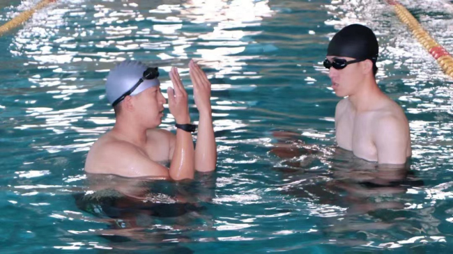 学游组、中游组、长游组……针对队员们的游泳基础,分成不同的组别,制定相应的训练计划,区分对象、分组开展训练,按照由分解到连贯,由基础到专业的步骤进行训练,对有一定基础的队员按照动作纠正,速度提升和距离加量的步骤进行训练。