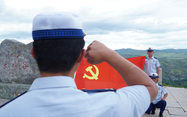 在阿勒泰森林消防大队靠前驻防的白哈巴任务区内,中哈大峡谷前庄严的党旗下进行宣誓,“我志愿加入中国共产党,拥护党的纲领,遵守党的章程,履行党员义务,执行党的决定,严守党的纪律,保守党的秘密,对党忠诚,积极工作,为共产主义奋斗终身,随时准备为党和人民牺牲一切,永不叛党。”全体党员佩戴党徽,高举右拳,目光坚定,庄严宣誓,句句铮铮誓言响彻展厅,彰显出党员对党忠诚、敢于担当的信心和勇气,进一步坚定了献身使命、服务人民,为党的事业奋斗终身的决心。