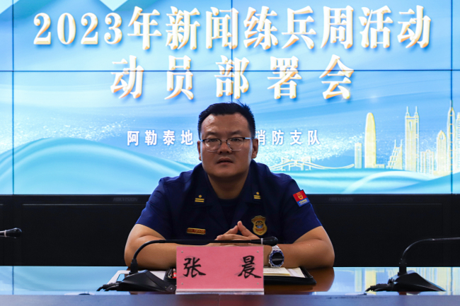 会上,政治部张晨主任宣读了《阿勒泰森林消防支队2023年度新闻练兵周活动实施方案》,明确了培训内容和具体要求。而后,他就提高思想认识,珍惜培训机会,培树当好新闻报道员的“荣誉感、使命感、责任感”;查找自身不足,积极学思践悟,提高当好新闻报道员的“政治性、敏感性、专业性”;严格自我要求,切实学有所得,在新闻宣传岗位上“出亮点、出精品、出战斗力”三个方面作了动员讲话,对全体参选学员提出了殷切的希望和具体的要求。