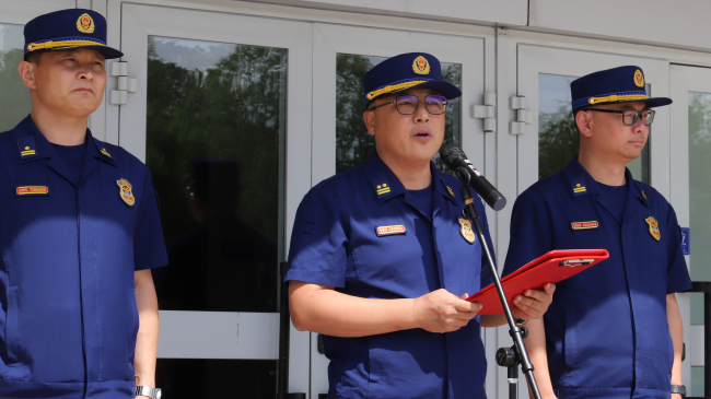 首先,政委吴晓波代表支队党委对即将奔赴新岗位的18名同志多年来为阿勒泰支队作出的贡献表示衷心的感谢,并致以美好的祝愿,希望18名同志到新的工作岗位后,能够继续发扬阿勒泰支队优良传统,保持严谨的工作作风、求真务实的工作态度,听从指挥,服从命令,以良好的精神状态和饱满的工作热情迅速投入到新的工作当中,在新的岗位上做出更大的贡献。