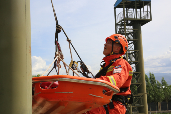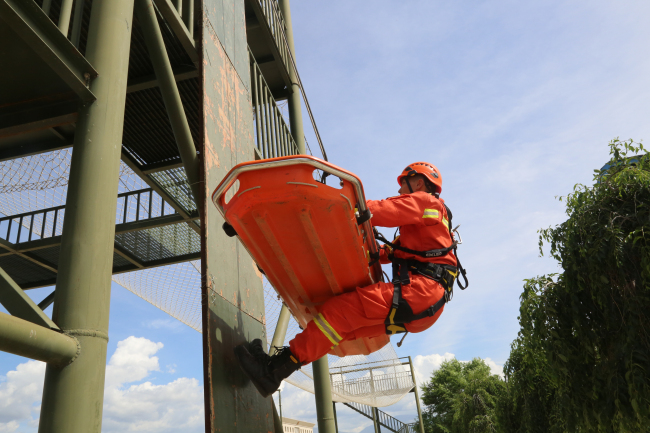 据了解,为提高该科目训练成绩,备战“火焰蓝”比武集训中,该大队大力开展悬崖向上救援科目训练。大胆打破以往的综合救援演练模式,通过指挥员现场救援指挥、架设绳索拯救系统等各方面进行训、演、练,不断提高比武人员的指挥能力、小组协同能力和救援系统架设能力。