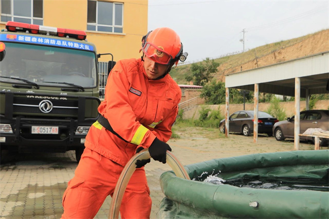 此次水泵架设训练重点围绕水泵操作、水带铺设撤收、战术运用等内容进行,期间,驻防分队遵守由慢到快、由易到难、循序渐进的组训原则,从巩固提高入手,突击训练重难点,大胆创新训练方式方法,做到严格要求、科学施训,始终瞄准森林灭火攻坚能力提质增效,确保全体指战员能够熟练掌握水泵操作流程,在实训中求突破、练本领。