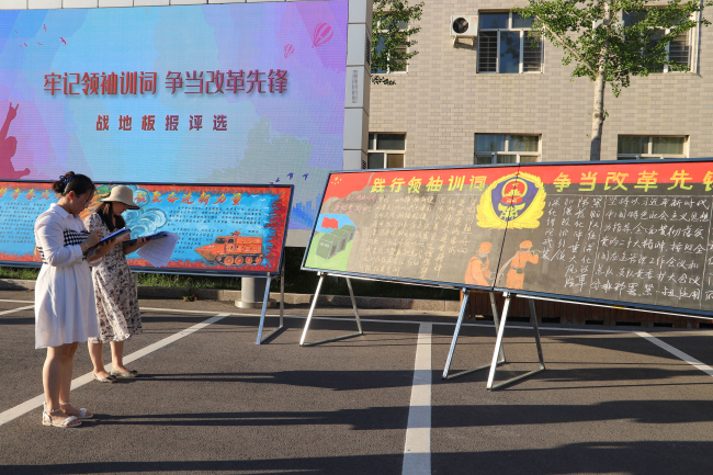 战地板报评比紧张刺激。“版面设计,重在突出主题,要利用好抓眼的颜色与明朗的字体,才能画出高度,画出故事,画入指战员的心里。”勤务中队三级消防士刘海介绍到。在评比过程中,评委们对照评分标准,从主题内容、整体效果、版面设计、绘图质量、文字排列等方面进行了细致斟酌,认真衡量。