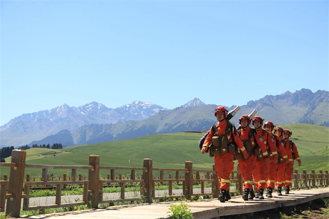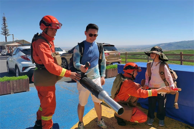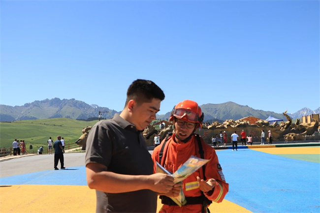 在重点景区,在苍茫的高山麦海上,在热闹的客流人群中,橘红色的身影始终闪耀。为进一步增强过往游客森林防火意识,降低森林草原火灾风险隐患,连日来,新疆森林消防总队特勤大队江布拉克驻防分队深入江布拉克景区开展防火专项行动,倡导安全出游新风,消除火灾安全隐患。