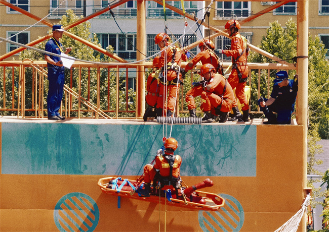 “一定要检查好自己的装备,不要错带和漏带,到索降塔上时更要及时挂好安全绳保证自身安全。”7月9日下午,评判员张少勋在特殊地形烟点处置课目开始前向比武队员一再强调道。