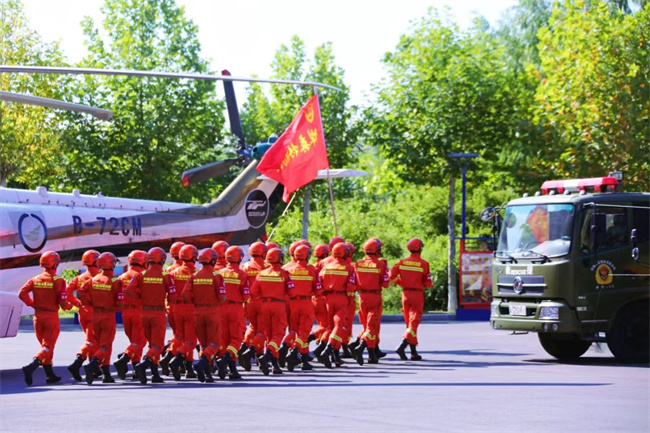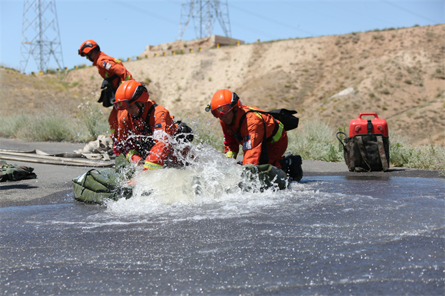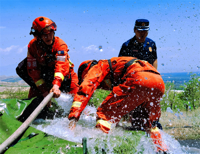 “预备,开始!”随着裁判员一声令下,全体人员迅即按照各自分工架设水泵、启动水泵、铺设管带……所有动作一气呵成。