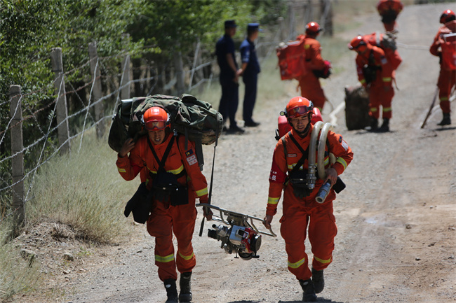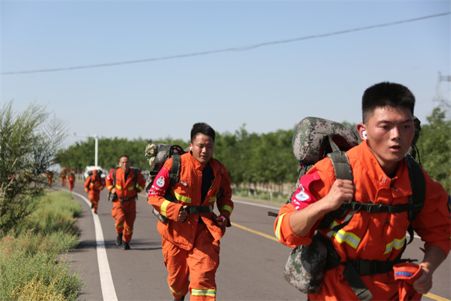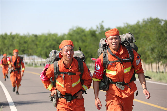 7月11日上午10时整,野外山地负重行军比武开始。野外山地负重行军科目是此次比武中最“硬”的科目之一。在遂行灭火作战任务中,由于地形条件受限,山林高地无法使用车辆等交通工具快速进入,这就要求指战员要练就“山里通、铁脚板、活地图”的过硬本领。根据比武要求,该科目是在野外山林地条件下设置距离不少于8公里的行军路线(单程),比武人员背负10公斤重的背囊独立完成行军,综合检验单个人员野外山地负重行军能力。