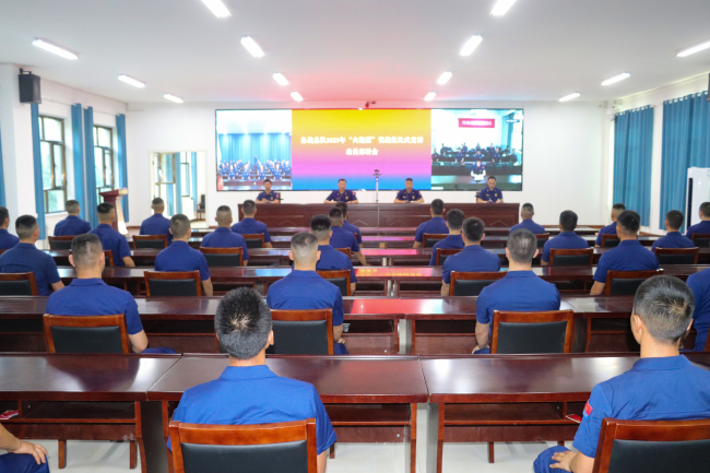 结合目前大队全体指战员正处反思总结支队比武中的强项与短板、深入钻研怎样提升训练水平、总队比武方案下发,全员深入研究比武细则的训练热情高涨顶峰期,大队及时严密组织召开此次总队比武部署会。会上,尤红超大队长宣读了《新疆森林消防总队2023年“火焰蓝”实战化比武竞赛方案》,对比武竞赛人员、训练科目、训练实施步骤和相关工作要求进行了传达,就如何抓好备战比武竞赛集训工作,提出几点要求:一要重视训练安全工作;二要总结支队比武经验,持续掀起实战练兵热潮;三要认真研究比武细则,开展针对性训练;四要做好各科目训练保障工作;五要不怕困苦、认真对待,付出最大努力。同时强调:要强化“拼”的精神,坚定“超”的勇气,讲效率、讲质量,用细心换成绩,用细致求突破;要结合自身实际设定目标成绩,不断超越、不断突破,切实将压力转换为奋勇争先、折桂夺魁的动力。