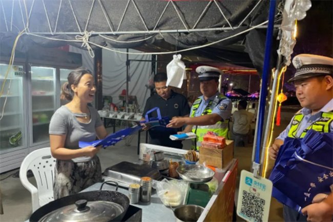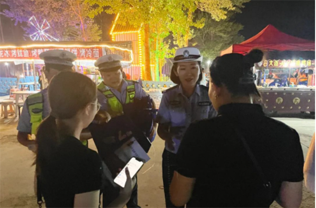 活动中,民警结合夏季群众纳凉特点,进入广场、纳凉集中地,通过摆放展板,发放宣传彩页、张贴海报和交通安全提示语的清凉扇的方式开展活动,重点向群众讲解了“一盔一带”的必要性、三轮车违法载人的危害性及酒醉驾及超员载客的严重后果,倡导广大交通参与者自觉遵守交通法律法规,重视自身出行安全防护。