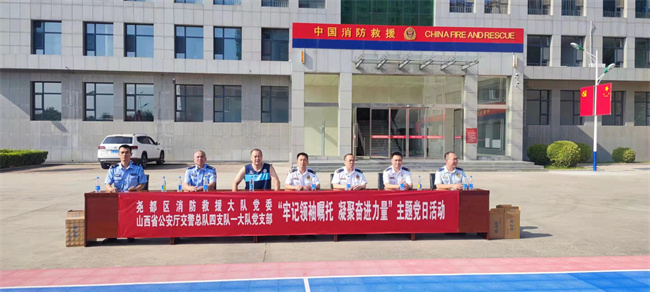 为庆祝中国共产党成立102周年,深入学习贯彻习近平新时代中国特色社会主义思想和党的二十大精神,2023年7月1日上午,山西高速交警四支队一大队赴临汾市尧都区消防救援大队开展事故安全宣传,并联合开展了“牢记领袖嘱托,凝聚奋进力量”主题党日活动。
