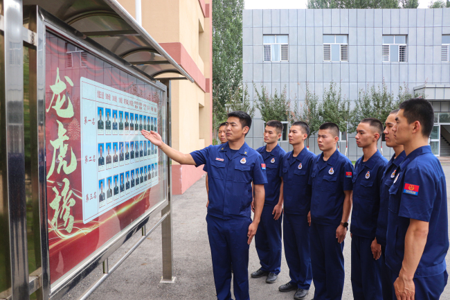 一次介绍参观。“大家看,这些照片是我们遂行灭火救援任务时战斗的痕迹,下面摆的是大队历年来所获得的荣誉奖牌。”指导员张宜凯带领新消防员参观荣誉室,详细介绍了大队文化内涵及建队以来的光辉历程,用光荣历程和先进事迹激励新消防员,使新消防员切身体会和感受到一代代森林消防员不断前进奋斗的光辉历程,进一步增进新消防员对应急救援事业的使命感、荣誉感和责任感。