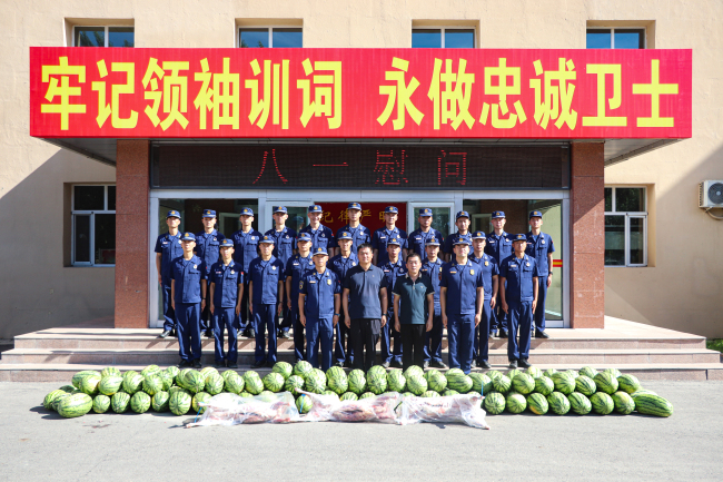 本网讯:(康冀) 7月31日,在“八一”建军节来临之际,政府副县长、公安局党委书记、局长赵建凯同退役军人事务局党组书记郭振军一行到富蕴县森林消防大队,看望慰问高温时节奋战在应急救援一线的消防救援人员,为大家送上了防暑降温物品,并致以亲切的问候和崇高的敬意。