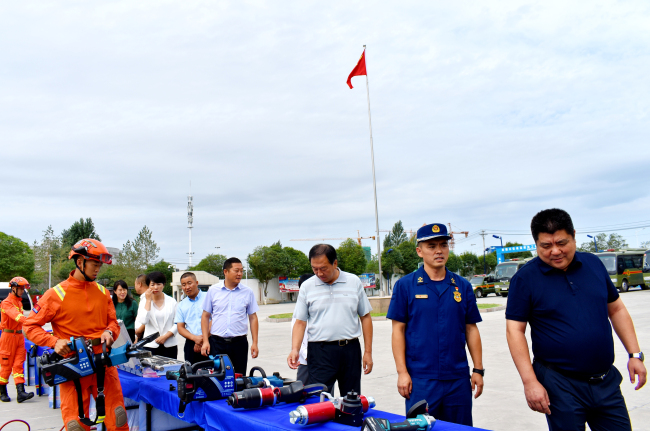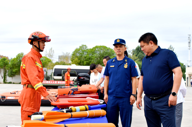 慰问工作组到队后,现场观看了综合性消防救援装备静态展示,在现场解说员解说下,领导们了解了森林消防队伍转制改革后“全灾种、大应急”的职责使命要求和地震、水域、山岳等专业救援装备,慰问工作组充分肯定了近几年大队在灭火救援、防汛抗洪等自然灾害中应急救援主力军、国家队的地位和作用。
