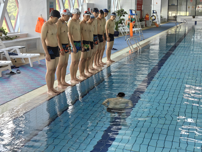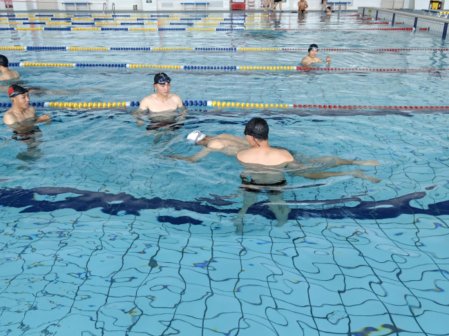 游泳是水域救援中一项必备技能,也是增强队伍救援能力、强化体能素质、提高打赢本领的有效途径。分队结合实际,采取聘请专业游泳教练、“老带新”的方式,严格按照“严密组织、科学施训、注重安全、确保实效”的要求,并根据新消防员的训练情况优化教学、训练计划,先理论、后实践,先分解体会、后综合练习,将训练内容进行扩展,并根据消防员的身体素质、游泳能力和水平,从易到难、循序渐进进行分组、分步骤训练。