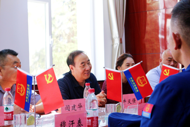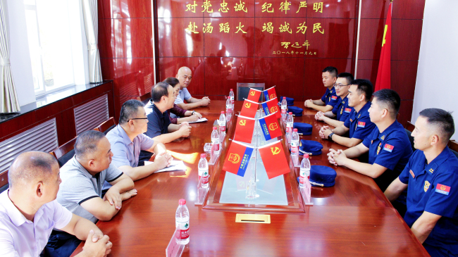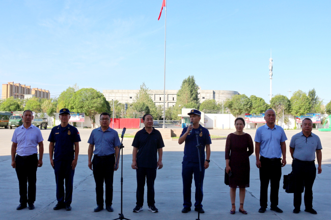 到队后,大队领导代表大队全体消防救援人员对塔城地区林草局、甘家湖国家级自然保护区乌苏管理分局、乌苏市林草局一行的到来表示热烈的欢迎和衷心的感谢。慰问中,牛义强局长为全体消防救援人员送上节日祝福,并向消防救援人员致以崇高的敬意。