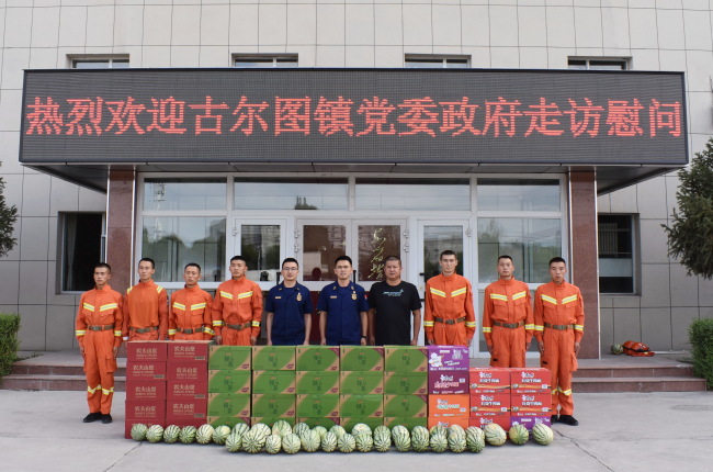 “八一”建军节期间,不仅有林草系统的慰问,还有乌苏市公安局、城市管理局、退役军人事务局、古尔图镇党委政府、中医院、电信公司、联通公司、兴鸿能源公司等单位的暖心慰问,让大家感受到了来自驻地人民群众的深切关怀。大队全体消防救援人员表示,我们将一如既往地坚守岗位,始终做到对党忠诚、纪律严明、赴汤蹈火、竭诚为民,在人民群众最需要的时候冲锋在前,救民于水火,助民于危难,给人民以力量,为维护人民群众生命财产安全而英勇奋斗。