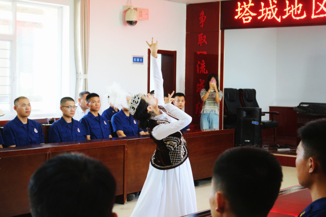 演出结束后,在大队领导的陪同下,参观了大队荣誉室和正规化建设。一张张充满着血与汗的照片,一个个大小不一的奖杯,一面面熠熠生辉的奖牌,都是大队无上的荣誉。荣誉的背后是每名消防救援人员不怕困难、不怕牺牲、奋勇拼搏的动人故事。随后,深入消防救援人员的工作生活环境,了解消防员的日常生活。整齐划一的内务,干净整洁的环境让地方领导和同志们感叹道:“森林消防队伍真不愧是一支拥有严明纪律、作风过硬的纪律队伍。乌苏大队无愧于军队优良传统的继承者,刻印在每名消防救援人员骨子里的红色基因让人敬佩。”