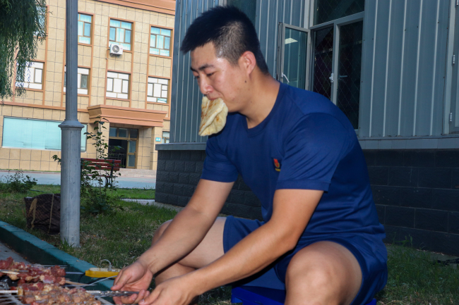 笑声歌声欢腾声,声声入耳;香味辣味烟火味,味味动心。晚风微醺,撒金绿茵,走进巩留县森林消防大队营区,一场属于森林消防指战员的烧烤活动正在进行,夕阳下,在浓厚的节日氛围中,大队全体指战员载歌载舞,感受味蕾的跳动,品尝舌尖上的美好……