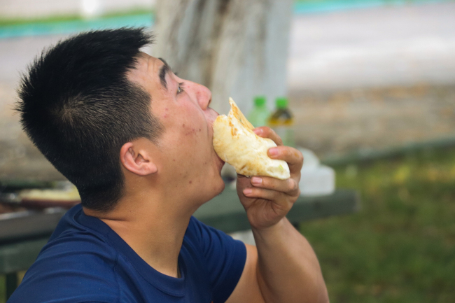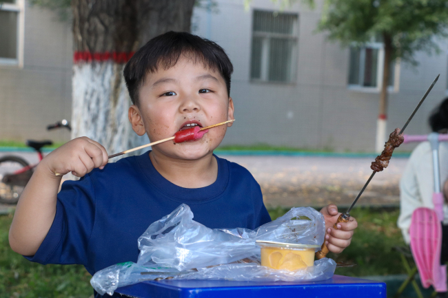 “撸串是最能体现吃货品味高低的检验利器。用最接地气的方式,在烧烤的选材与调料、火候上下点功夫,立刻就能脱颖而出。”大队炊事员苏瑀杰手拿刚烤熟滋滋冒油的肉串和我们介绍到。