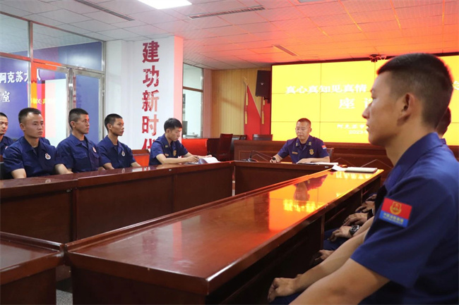为了解实习消防员的学习、工作、生活情况,摸清思想状况,推进新消防员实习工作持续深入开展,8月3日,巴州森林消防支队阿克苏大队组织实习消防员召开“真心真知见真情·关心关注真关怀”座谈会,助力实习消防员缩短心理、生理适应期,更好地融入新集体、走上新岗位,实现第二次蜕变。