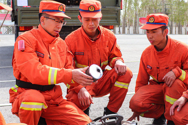 “想做好装备维护保养工作,首先要懂得装备上的每个部件叫什么,有什么作用,日常要如何维护,例如我们经常使用的风力灭火机,我们在保养过程中,日常擦净风力灭火机外表面的泥土、油污等污垢;每周空气滤芯须清除污物后重新安装;火花塞至少每三个月或参加灭火作战后检查一次,视情况更换……”在装备保养中,老队员们为新下队的消防员详细讲解如何进行装备维护保养。