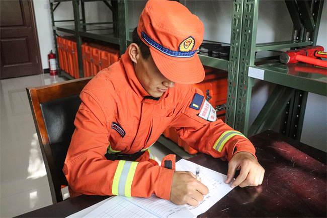 “天气环境也会对装备造成一定影响,就拿这台水泵来说,夏天很容易启动,而冬天想要它“一把着”,就要提前进行预热。”库管员尹欧兴向大家说道。今年4月份,他参加了总队装备维护培训,回来以后他就担负起了大队的装备维护保养工作,经常在空闲时间给队友们讲解装备维修保养知识,有效提升大家对装备检查、修理、保养的技术水平。