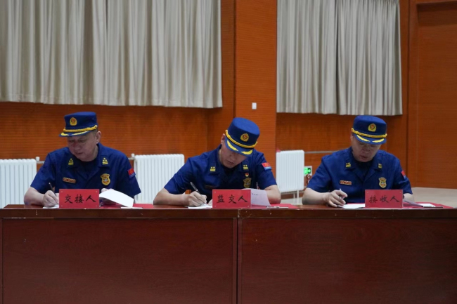 仪式上,新疆、甘肃森林消防总队对抽组人员、车辆、装备、物资进行了核对清点,结合核对情况,由移交、接收、监交三方共同签署了移交手续。张永久组长表示:“作为青海机动队伍第一代创业人,我们使命光荣,责任重大,任重道远。希望同志们切实肩负起党和人民赋予的职责使命,把忠诚举过头顶,做到坚决服从;把纪律刻在心尖,做到恪守本职;把使命扛在肩上,做到时不我待;把为民挺在胸前,做到全心全意,奋力谱写消防救援机动队伍事业新华章。”