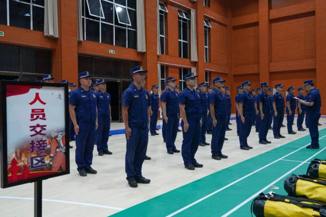 本网讯:(丹增晋美)7月19日,国家消防救援局青海机动队伍在海东消防救援支队训练与保障基地举行第一批抽组指战员交接仪式。甘肃森林消防总队政委许长有、新疆森林消防总队副政治委员环正刚及青海筹备组成员参加仪式,筹备组组长张永久同志主持仪式。