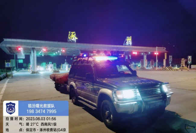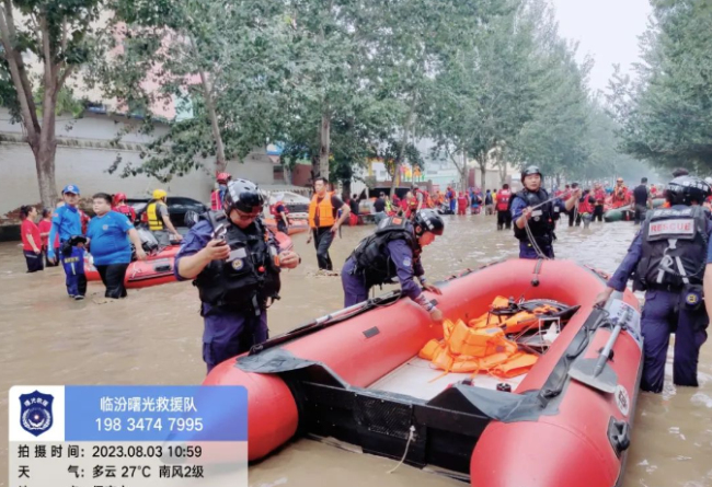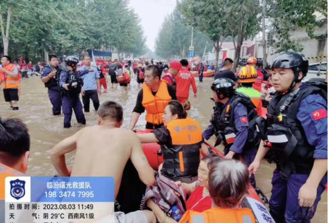 灾情就是命令,临汾曙光紧急报备待命,8月2日接到河北省涿州市应急局邀请函,17:00临汾曙光救援队一车五人携带一艘冲锋舟及水域救援装备从临汾启程。