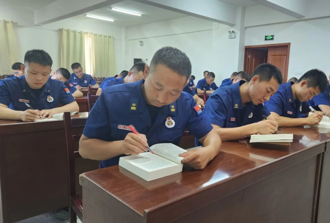 大队坚持把传承红色文化作为队伍发展的“导航仪”,采取“红”书推荐、月读一书、互评互鉴等形式,引导全体指战员阅读红色书籍,从红色经典中汲取营养,不断提升队伍红色文化底蕴。在读书分享会上,指战们端坐静听,不仅要学《党史》、读《党史》,同时也要从革命先辈中寻找智慧,挖掘决胜诀窍,汲取奋进力量,传承不为名、不为利、不怕苦、不怕死,一心为革命,一心为人民的崇高品德。