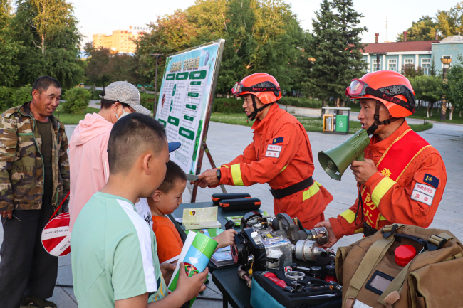 在旅游景区客流量较大地段,阿勒泰地区森林消防支队设立防火宣传点,通过摆放宣传展板、张贴宣传海报、悬挂标语横幅、发放宣传彩页、播放警示录像等方式,向广大群众讲解“森林防火小常识”、发放森林防火宣传单,针对当地牧民和入山活动人员轨迹,对易发森林火情、火灾林区、村庄开展携装巡护,向过往行人科普宣教森林草原防灭火常识,引导教育群众在日常生活中时时处处注意森林防火,构建密集防火管控网络。