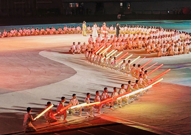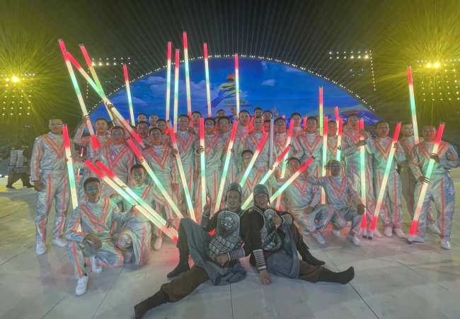 自接到参演任务以来,支队党委高度重视,召开专题会议研究参加人选,择优选取表现突出的干部骨干参加,统筹各方力量,全体指战员克服比武、训练等影响,加班加点排练,常常排练至深夜凌晨,政治部指定专人每天带队赴体育场彩排,干部骨干带头参加,排练期间严格按照方案计划,细化分工、压实责任,加强与相关部门通力协作,全力做好十四运开幕式排练工作,以零失误的成绩圆满完成了十四运开幕式演出任务。