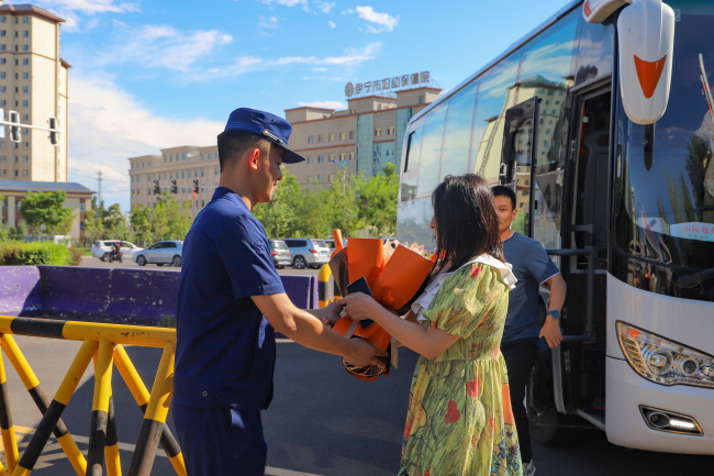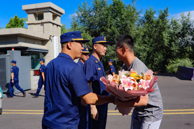 为深入了解和学习典型人物先进事迹,新疆森林消防总队集中组织第八届“咱身边的好样子”先进典型、标兵中队主官代表及家属前往各单位进行交流学习,8月8日,先进典型和标兵中队主官代表一下车。伊犁森林消防支队的指战员第一时间送上鲜花,在一阵阵掌声和锣鼓声中,先进典型们手捧鲜花走进支队营区。