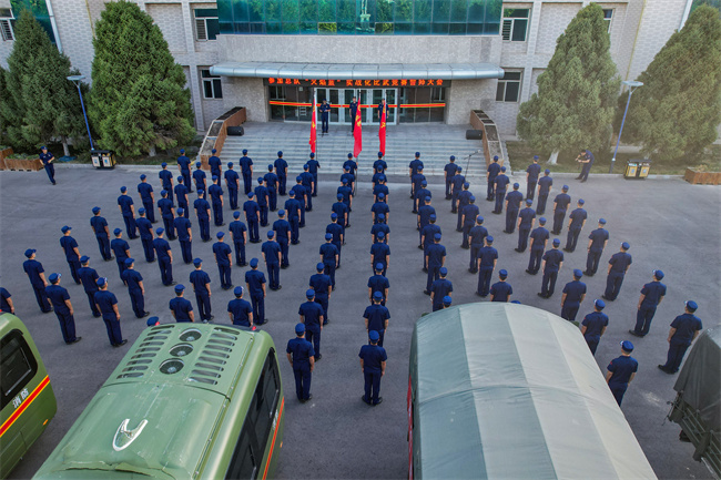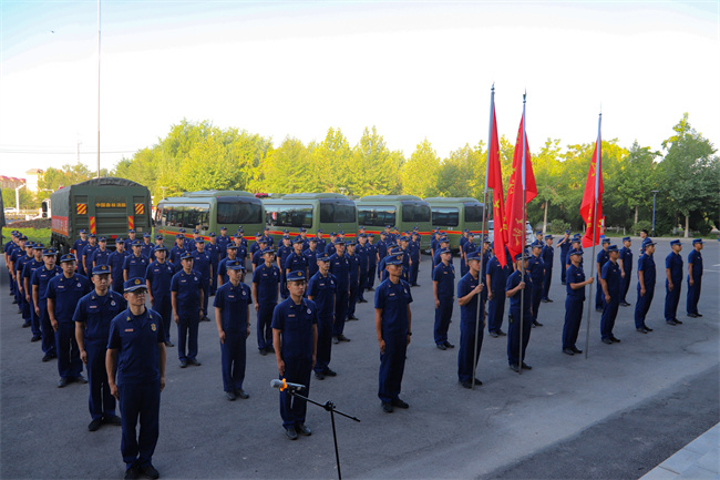 本网讯:(孟杰)8月11日上午,新疆总队伊犁支队隆重举行总队“火焰蓝”实战化比武竞赛誓师大会,为参加比武指战员加油鼓劲,出征仪式由支队张涛政委主持,赵永波代支队长、张浩利副支队长和机关、基层全体比武人员参加大会。