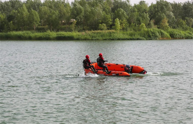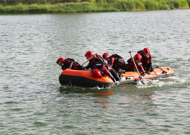 水面上,指战员穿着救生衣,操作橡皮艇向水域深处驶去,在水面上完成了翻舟自救、舟艇驾驶、橡皮艇绕标、定点离靠岸等内容,训练结束后,教练员组织了讲评,明确了下步训练计划。通过开展训练,使参训指战员熟练掌握了舟艇的操作方法和水上救援的基本技能,提高了队伍综合应急救援能力。
