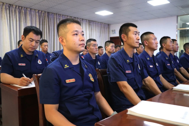 安全最怕的是什么?安全最怕的就是假象,大家以为是很安全,实则是很危险的,比如... ...”学习室内,指战员们通过朴实的语言、生动的事例,从不同角度出发,为大家讲述对安全工作的认识和理解,营造“人人讲安全、时时抓安全、处处保安全”的浓厚氛围。全体指战员们神情专注、端坐静听,现场不时爆发出阵阵掌声。