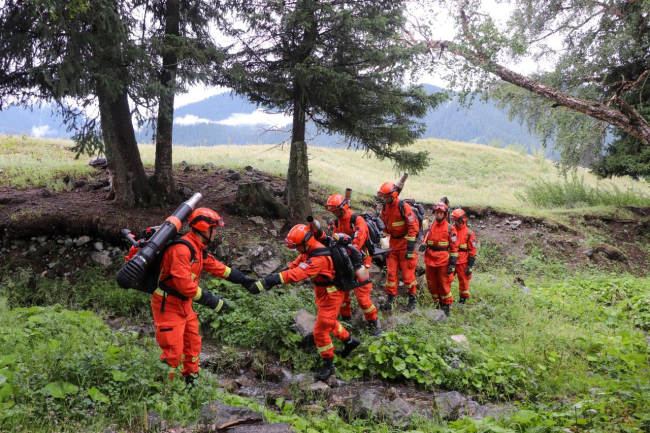 巡护的道路漫长且又枯燥,山里手机没有信号,指导员石晓平利用巡护间隙“碎片化”时机开展文娱活动,维吾尔族消防员艾力木拉提的舞蹈“麦西来普”缓解了全体指战员疲惫的身躯和压力。
