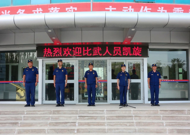 支队全体指战员将以此次比武竞赛为新的起点,把比武赛场上的奋勇拼搏、突破极限的进取精神和夺旗意识转化为更大的工作动力,继续发扬勇攀高峰的精神,坚决担负起应急救援主力军、国家队崇高使命,紧贴“全灾种、大应急”救援任务实战需求,全面提升支队实战攻坚打赢制胜能力,在今后工作中再接再厉、珍惜荣誉、忠实践行“人民至上、生命至上”理念,为经济社会高质量发展和人民群众生命财产安全提供更加坚实的安全保障,为党和人民再立新功。