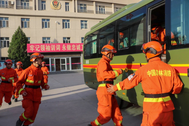 支队针对近期驻地气温高,降雨量减少的实际,在不打招呼的情况下扎实开展灭火拉动演练,时刻绷紧战备这根弦。此次演练,以和静县发生森林火灾为背景,重点对启动预案、快速响应、编携配装、相关保障等要素进行检查,同时就队伍反应速度、力量编成、个人携带“十个一”、装备运用、一线指挥员情况汇报等遂行任务能力进行检验评估。
