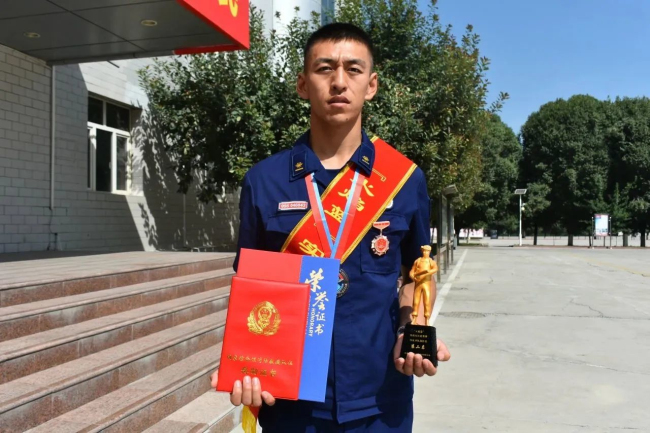 第一次参加总队火焰蓝比武竞赛取得了综合科目第二名的好成绩并荣获个人三等功,“台上一分钟,台下十年功”,在备战总队比武竞赛期间,除了参加集训队的训练,每天清晨还坚持早起训练绳索,从正常掌握到娴熟精通,循序渐进。白天在训练场上一遍又一遍地练习,晚上针对综合救援项目中的短板弱项不断查找原因和解决方法,苦练加巧练,他一次次超越自己的极限。在顶撑和狭小空间破拆项目比赛中为了集体荣誉拼到力竭,在“三能”综合竞技课目中将时已筋疲力尽他却仍咬牙坚持,最终以4分27秒的成绩在该课目中取得个人成绩第一名。他铮铮铁骨、奋勇拼搏,争取的不只是荣誉,更是要证明自己攻坚克难的战斗力和百折不挠的精气神。他说:“这次比武真的亲身体会到了什么叫‘一山更比一山高’”这是李新全在参加完比武后最大的感触。