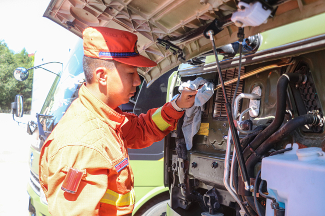 保养过程中,驾驶员爬车顶、钻车底、更换空气滤清器,补充制动液、润滑油,保养蓄电池、底盘灯……一个小环节、一处小死角都不放过。驾驶员冯琦说道:“我们的车辆在遂行任务中发挥着不可替代的重要作用,在经历过雨水的冲刷和烈火的洗礼后,车辆或多或少会出现一些问题,想要发现这些问题就要有耐心,所有部位都要排查。”