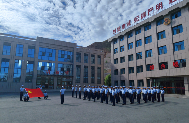 “我志愿加入中国共产党,拥护党的纲领,遵守党的章程……随时准备为党和人民牺牲一切,永不叛党!”铿锵而庄严的誓言响彻营区。面对鲜红的党旗,二中队党支部书记余江带领在场全体党员庄严宣誓,全体党员高举右拳,神情庄重,誓言铿锵。入党誓词全文虽然仅有短短80字,但却字字入心、句句千钧,镰刀、锤头在鲜红的党旗上光芒四射;坚定的目光、有力的拳头、激情的誓言,汇成全体党员的万丈豪情。