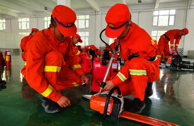 启动装备、检查油料是否充足、清洗空气滤清器、检查油管、擦拭……装备维护保养过程中,全体队员始终坚持“流程一步一步走、装备一台一台过、故障一个一个查”的原则,让保养的细节越来越清晰,确保装备始终保持良好的性能。“班长,这个水泵一直拉不着是什么原因啊”“班长,油锯使用过程中链条为什么老是卡住呢”,在维护过程中,抽组队伍积极发挥装备维修骨干作用,通过“以老带新”的方式进行手把手帮带,使全体队员进一步学懂弄通,结合自身实践,快速掌握装备维护保养技能。