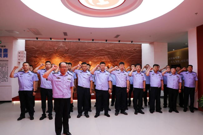 参观结束后,全体民警面对党旗重温了入党誓词。民警们纷纷表示,此次参观深受警醒,在今后的工作中要时刻绷紧纪律之弦,以案为鉴,牢记人民警察队伍是党的“纪律部队”,自觉做党和人民的忠诚卫士。要坚持以党性立身做事,增强纪律意识、规矩意识,做到公正执法、依法执法、廉洁执法。
