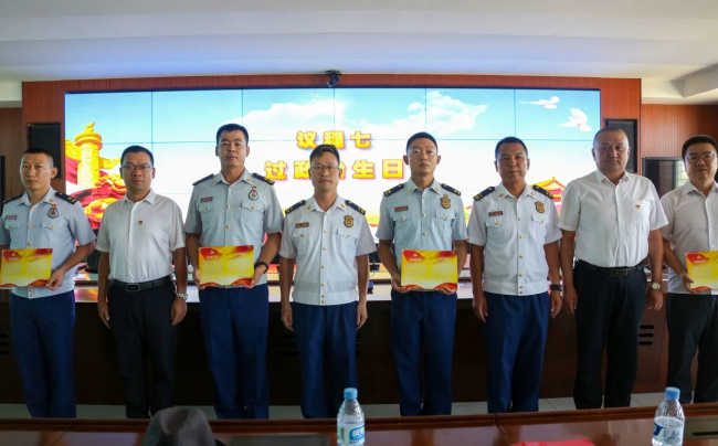 期间,观看了支队消防宣传教育片,巴州民族宗教执法队队员买吾郎江·阿里木同志进行了发声亮剑,消防员代表李常州重温了入党志愿书,巴州民族宗教执法队队员蔡仁托娅回忆了入党初心。