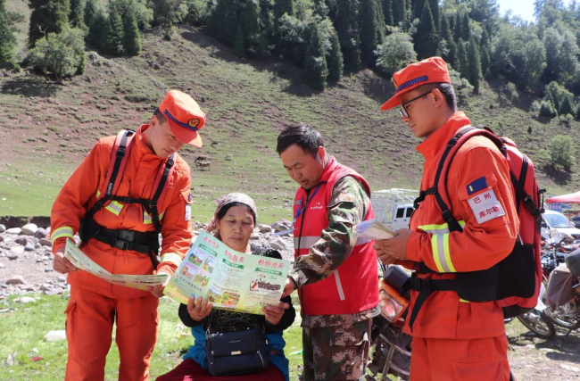 “同志您好!我是森林消防员,天气干燥,请不要在野外抽烟,野炊,这是我们精心制作的防火知识宣传单,请您认真学习……”执勤期间,消防员艾力木拉提正在给驻地居民宣传森林防火知识。驻防分队采取流动宣传的形式,在景区、林区主干道等人流量密集区域,向人民群众讲解森林防火常识,提高群众森林防火意识。同时,深入林区牧民家中讲解相关法律法规,普及林区用火注意事项、森林火灾逃生技巧等安全知识,真正把“森林防火、人人有责”的观念根植于群众心中,时刻敲响森林防火警钟。
