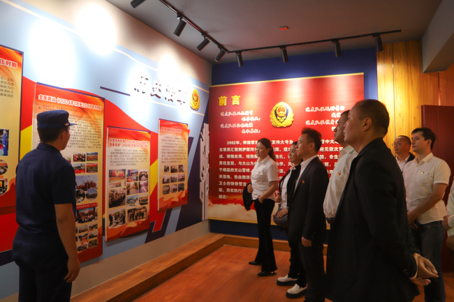 而后,歌剧院全体党员在支队政治部郭合清主任的陪同和引导下,参观了支队队史馆,观看了支队全面建设工作汇报片,聆听了队伍建设发展介绍,全面细致的了解了支队全面建设情况。观看结束后,歌剧院党员代表陈治利、孙燕、张连峰等为指战员们献上精心准备的节目,向指战员们表达崇高的敬意和真挚的祝福。